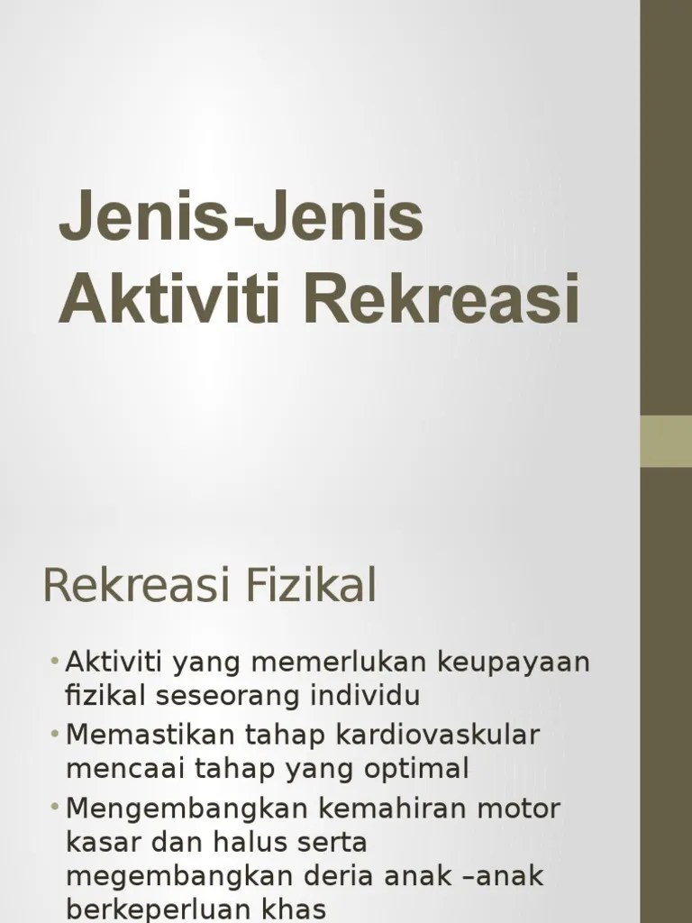 Aktiviti rekreasi biasanya akan menyegarkan badan d . Aktiviti rekreasi yang memerlukan keupayaan mental dan minda serta fokus. You have just read the article entitled contoh aktiviti rekreasi. Mampu untuk menilai tahap kecergasan individu. Abseiling, bola sepak, perkhemahan b) jenis rekreasi i) rekreasi . Oleh itu, kita perlu mempunyai kesedaran terhadap kepentingan mengamalkan aktiviti riadah dan rekreasi sebelum nasi menjadi bubur.